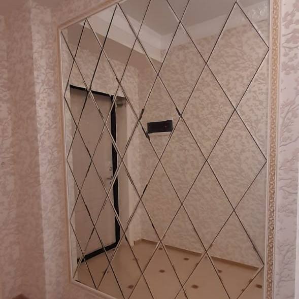 Использована зеркальная плитка вытянутый ромб размерами 20х34.